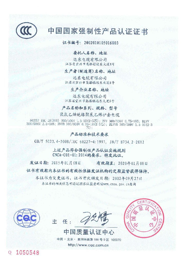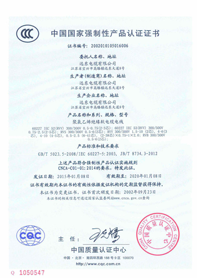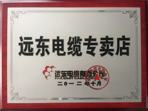 远东电缆特许专卖证书