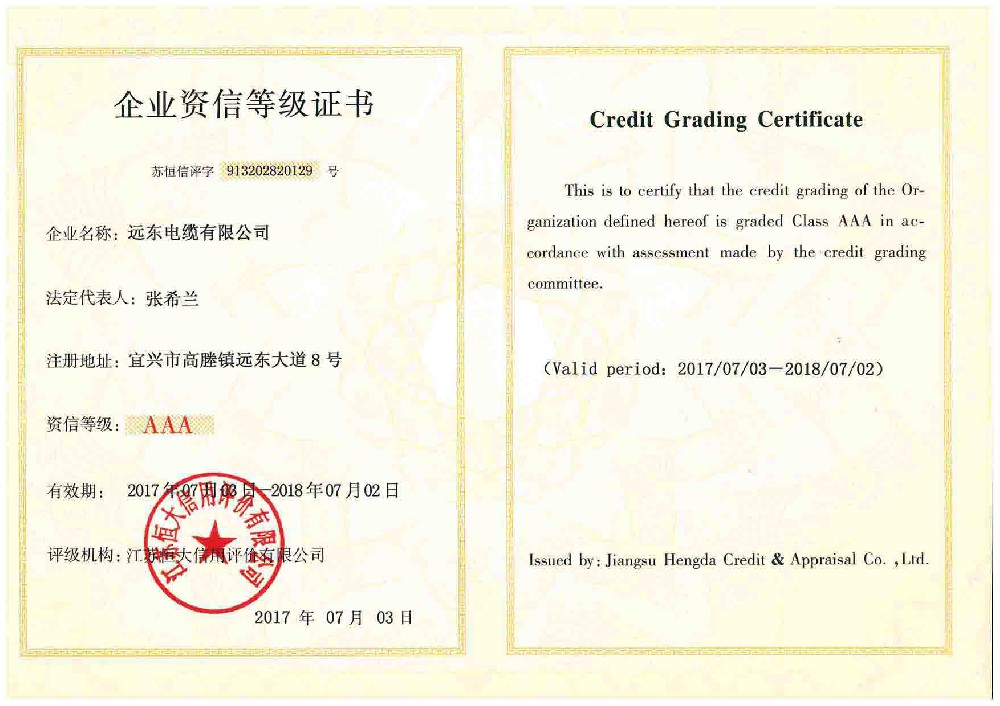 企业资信等级证书