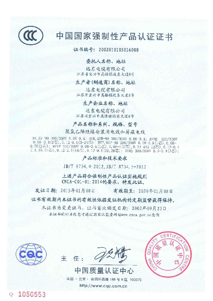 产品认证证书